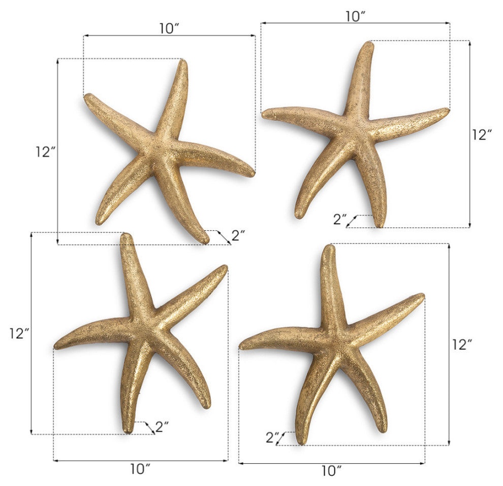 Starfish, Gold Leaf, 4-Piece Set, Small, Gold, Small