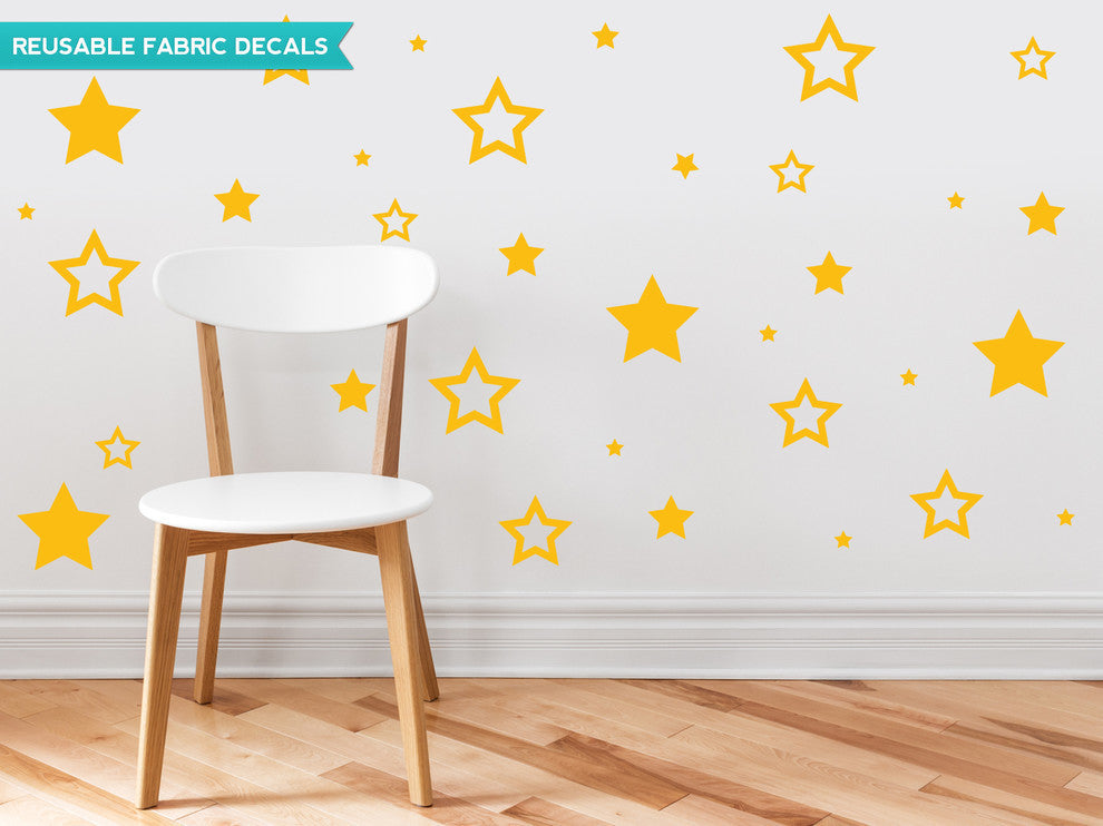 These beautiful stars fabric wall decals will add huge personality to your wall decor. The decals are made from a fabric material that is extremely easy to apply. Just peel and stick anywhere. They are repositionable and can be removed without leaving any sticky residue.
