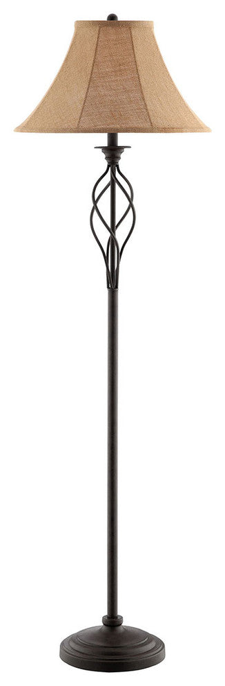 Gently twisted design metal floor lamp. Tan textured linen bell shape softback shade. Additional Product Information: Item Height (in.): 61 Item Width (in.): 19 Item Length (in.): 19 Number of Bulbs: 1 Bulb Wattage: 100 Bulb Type: A-15 Bulb Included?: No Switch Type: 3-way Collection: Gaston Item Finish: Tan Item Materials: Steel Shade/Glass Type: Bell County of Origin: China