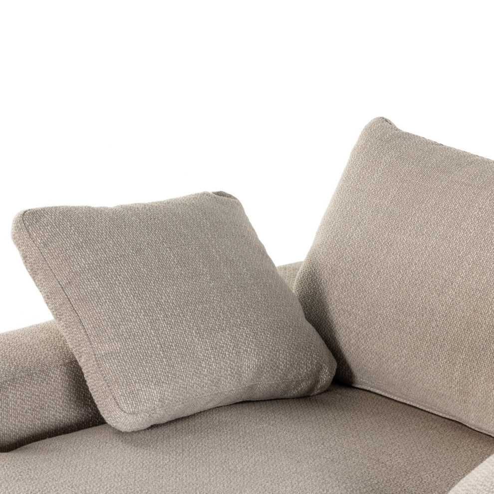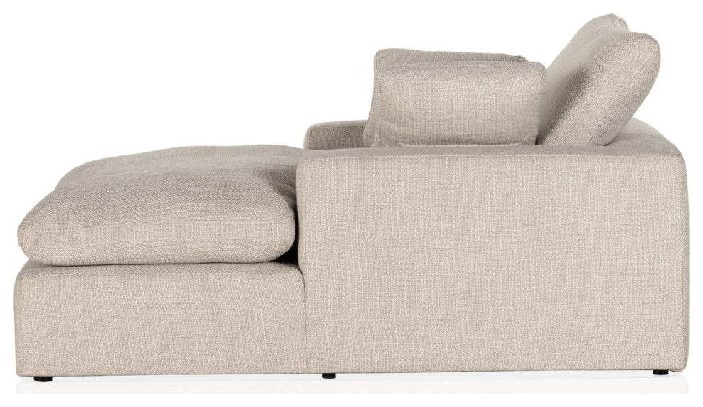 Equal parts casual and chic. Feather-blend cushioning and high-performance upholstery with a heavily textured boucle feel make this chaise lounge an easy go-to. Fluff cushions regularly to maintain appearance, and steam fabric for a more tailored look. Performance fabrics are specially created to withstand spills, stains, high traffic and wear, ensuring long-term comfort and unmatched durability.