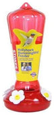 Fill your Hollyhock feeder with nectar and hang near flowers that will attract hummingbirds. The wide-mouth bottle makes for easy filling and the Hollyhock feeder fully disassembles for easy cleaning. The specially designed base is leak resistant. The feeder includes a black polyester coated S-hook for hanging. During the hot summer days, be sure to clean your feeder and change the nectar every couple days to avoid molding. Its easy to make your own nectar at home, see your recommended recipe: - 1 part white table sugar (not honey or artificial sweeter) - 4 parts water Combine and boil for 1 minute to dissolve sugar. Allow mixture to cool, fill your clean feeder. Extra solution can be stored in the refrigerator.Highlights:Color: Red.Nectar Capacity: 27 Oz.Size: 5.2"x5.2"x10".Red tinted fluted plastic bottle.Durable plastic two-piece, leak resistant base.Four feeding stations.Wide mouth bottle for easy filling.Feeder fully disassembles for easy cleaning.Includes black polyester coated S-hook for hanging.