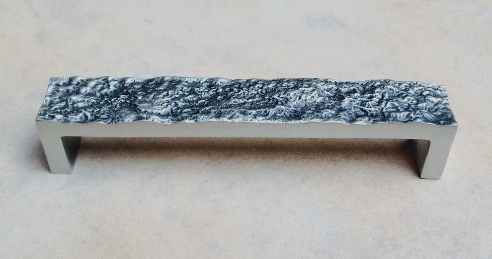 This modern Stone Henge Pull will give a contemporary look to your cabinets. Rough cut stone texture.Includes Accessories: 2) 1"-8/32 screwsCenter-Center: 4-3/4"