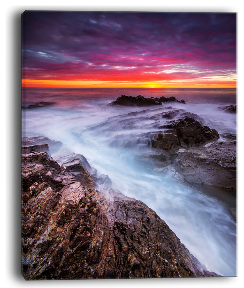 The Stormy Seashore with Colorful Sky canvas art print is sure to make an impression on anyone who sees it. This artwork is gallery wrapped around a 1-inch solid wood frame and arrives carefully packaged and entirely ready to hang on the wall. Design Art only uses the highest resolution and pigments to ensure a crisp colorful print that is never faded or pixelated. This artwork is sure to be a conversation starter in any home or office.