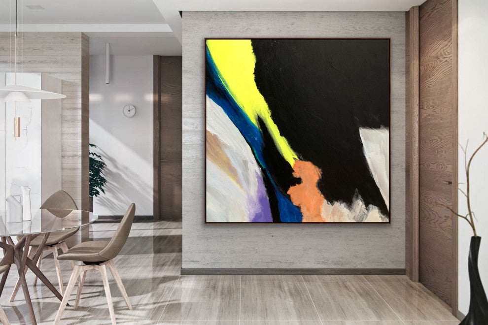 "Strong" 60x60 IN Black neon abstract Art Large Modern Painting White Black Minimal ArtMEDIUM: Professional grade acrylic paints and mediums on canvas. Finished with a clear varnish to protect your painting from UV light, moisture and dust. CONDITION: New QUALITY: 100% Hand painted and created in my studio at USA. Original, authentic and personally signed by artist.STRETCHED Canvas : Painting will be stretched over 1.5" deep inner wooden frame ready to hang but NO outer frames.PLEASE NOTE- THE OUTER FLOATER FRAME IS NOT INCLUDEDNote: Outer frames not included, contact us for framing options (additional cost)