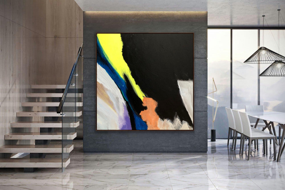 Strong 60x60 IN Black neon modern Art Large Abstract Painting White Minimal Art
