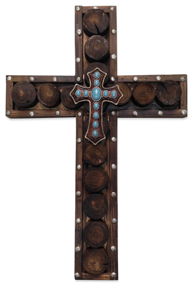 This decorative wood cross features wood plank circles accented with a turquoise center cross to look great in any western space. The HiEnd Accents Home D_cor Collection provides all of the little details that bring the style of a home together. Each piece is designed to be tasteful and inspiring, while maintaining quality and affordability.