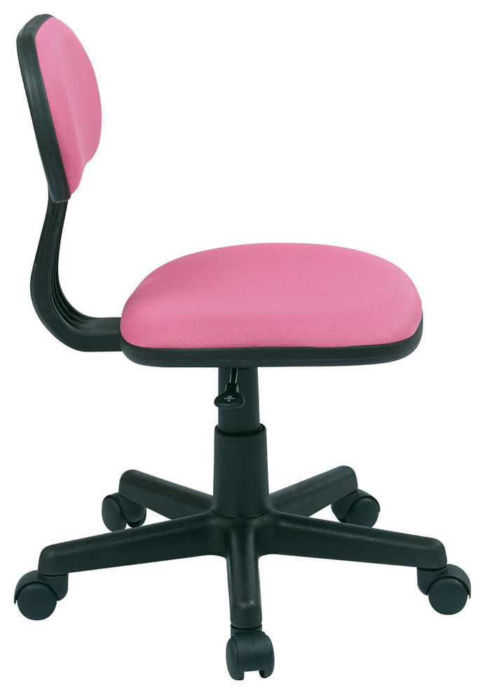 Student Task Chair in Pink FabricEvery student deserves to have a comfortable and supportive place to sit while working away at his or her tasks. The funky and functional OSP Designs Student Task Chair features pneumatic seat height adjustment, which allows it to be paired with desks of all heights. A cushioned fabric seat and chair back in are available to be upholstered in your choice of 6 fabric colors, keeping the design youthful and ideal for students of all ages. The heavy-duty base with dual wheel carpet casters makes it easy to maneuver on any number of floors and able to support the wear and tear of everyday use. Make homework less of a pain in the neck by adding the OSP Designs Student Task Chair to your home.Features: • One Touch Pneumatic Seat Height Adjustment • 360 Degree Swivel Task Chair • Heavy Duty Nylon Base with Dual Wheel Carpet Casters • Pink Fabric • Available in 6 fabric colors, keeping the design youthful and ideal for students of all ages. • Funky and functional, comfortable and supportive place to sit while working away at his or her tasks.Specifications: • Chair Dimensions: 16.5"W x 19.75"D x 33.25"H • Chair Weight: 13.5 lbs • Chair Weight Capacity: 150 lbs • Back Dimensions: 15"W x 8"H x 1.5"T • Seat Dimensions: 16.25"W x 15.25"D x 2"T • Seat Height: 15.5" - 20.25"