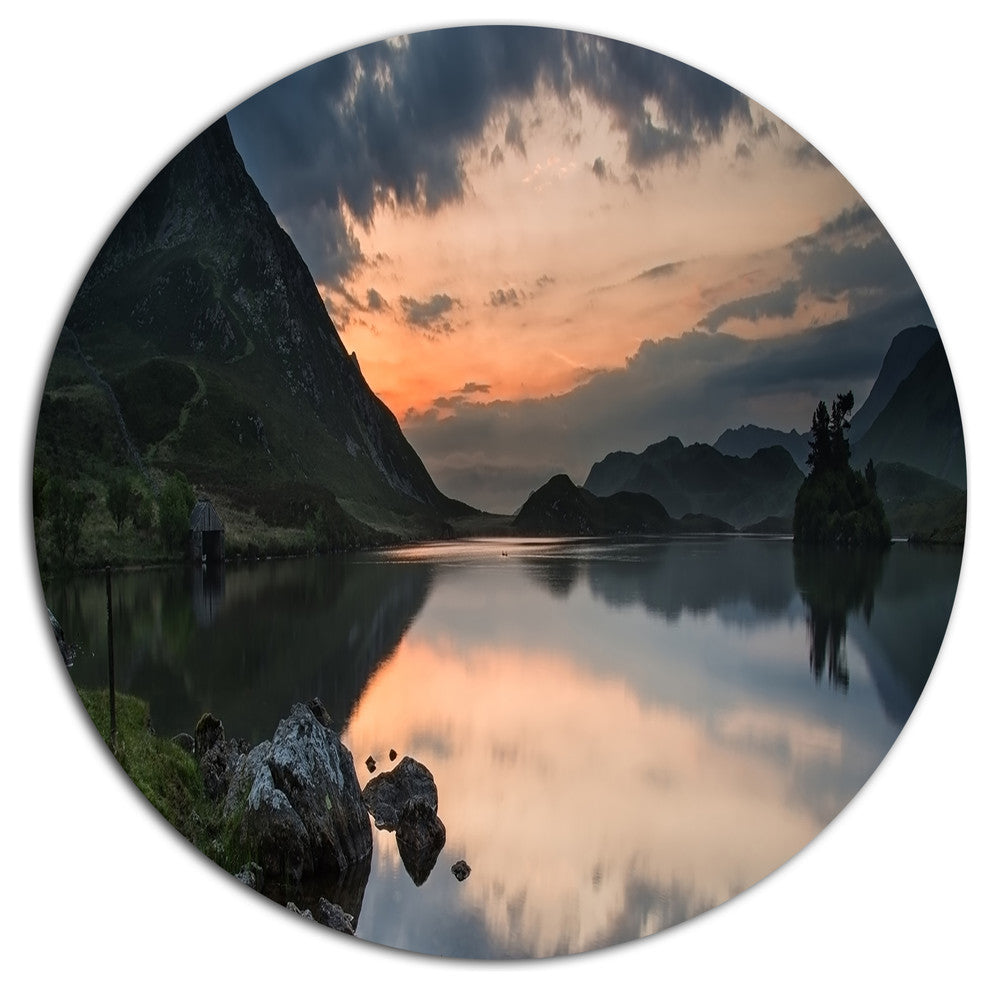 Bring Contemporary Abstraction to your home with this large Circle Metal wall art. This Stunning Sunrise over Lake Panorama Metal Artwork makes it the focal point of any room or office.