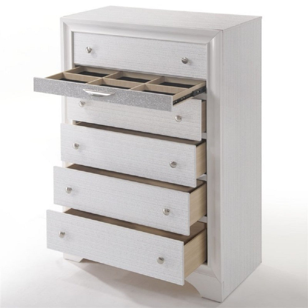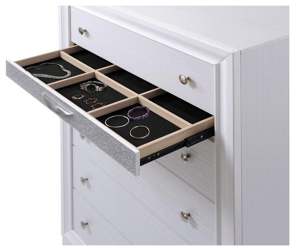 This nightstand in white finish can give your some extra storage space and enhance your bedroom decor. It also has a small drawer with jewelry compartments and felt lined and on top and a perfect place to put a reading lamp or alarm clock for quick access. Bring this nightstand home and start a more relaxing lifestyle after a long day.