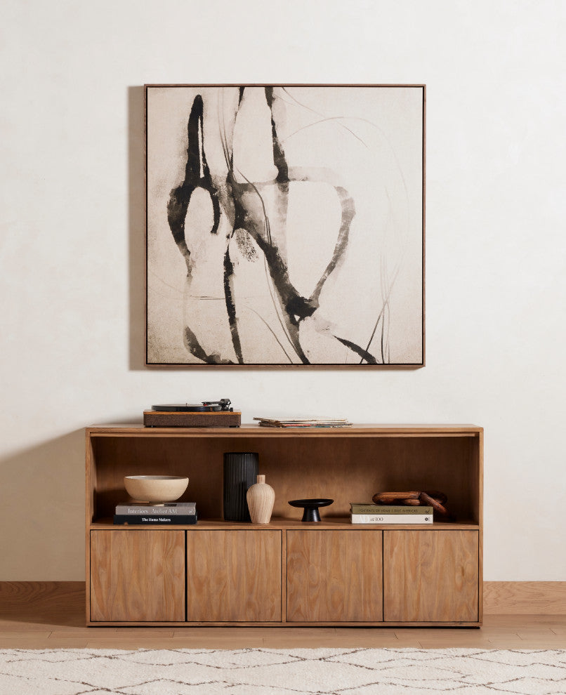 A seasoned graphic designer with a penchant for modern minimalism, artist Dan Hobday finds inspiration in the coastal landscapes of his hometown of Devon, England. Framed within black maple for a gallery-quality look. If not currently in stock, this texture-enhanced piece ships within three weeks. Handmade in Austin, Texas.