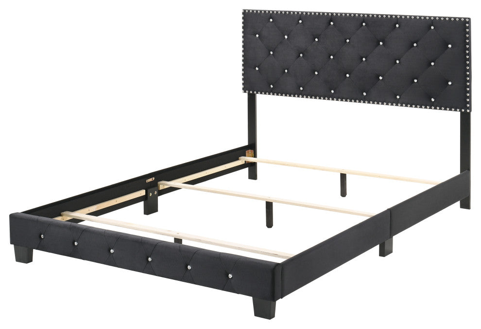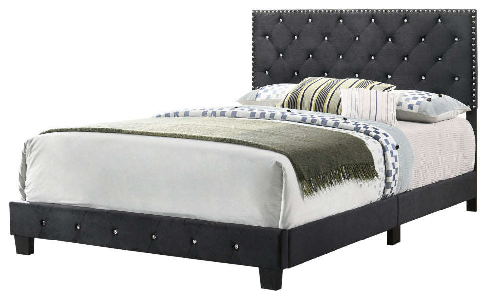 Soft Velvet Upholstering Tufted with Faux Jewels is Featured on the Suffolk Collection. Choose from a Variety of Colors in all Sizes -Twin, Full, Queen and King. Quick ships in one box for EZ Delivery.