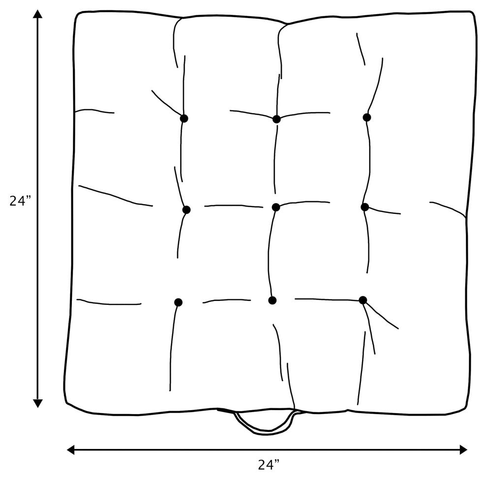 Elevate your outdoor space with this versatile blue tufted floor pillow. Featuring a stunning stripe fabric and billowy comfort, this square floor cushion is sure to add that personal touch you''ve been hunting for. Move your floor pillow to any area thanks to a trendy and functional handle. From the front porch to the patio, each floor pillow is perfect for lounging, reading, or entertaining. Crafted in North America, this floor cushion is designed to withstand wear and tear so all you have to do is sit back and relax! Sunbrella is founded on the belief that fabrics should be both beautiful and functional. We began in the 1960s with the challenge of creating an awning canvas with a substantially longer lifespan than cotton. Sunbrella has become widely adopted for shade structures, marine canvas and upholstery fabric for both outdoor and indoor applications.Our textiles are made with close attention to design detail, and engineered with robust performance characteristics that provide resistance to fading and degradation from sunlight and chemical exposure. The fabric is tactile yet durable, has industry-leading environmental characteristics, is easy to care for and offers long life - wherever it''s used.No Sunbrella manufacturing facility in the world sends waste to landfills. A result of our focus on efficiency, this monumental achievement allows Sunbrella to lead by example, putting sustainability into practice every day across the globe. Our unique coloring process not only makes Sunbrella fabrics fade-resistant, it also conserves more water than conventional dyeing processes. At Sunbrella we believe it''s important to preserve the environment around our facilities. We work to conserve the plant and animal life that is native to the area and encourage our employees to plant gardens designed to provide fresh food and nourish local wildlife.We stand behind our fabrics with a guarantee that''s the best in the industry: a 5-year limited warranty for upholstery. This warranty protects the original purchaser of Sunbrella fabric. This warranty protects against Sunbrella fabric becoming unserviceable due to color or strength loss from normal usage and exposure conditions, including sunlight, mildew and atmospheric chemicals.