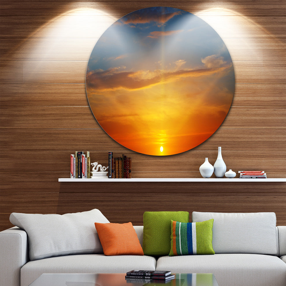 Bring Contemporary Abstraction to your home with this large Circle Metal wall art. This Sunlight in Sky above Horizon Metal Artwork makes it the focal point of any room or office.