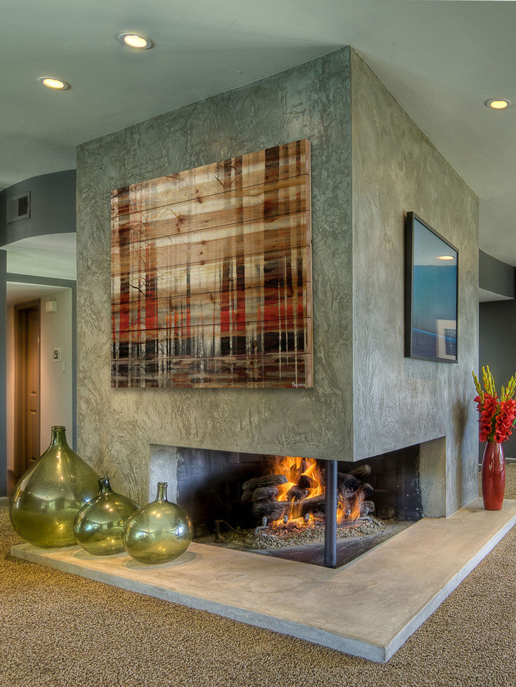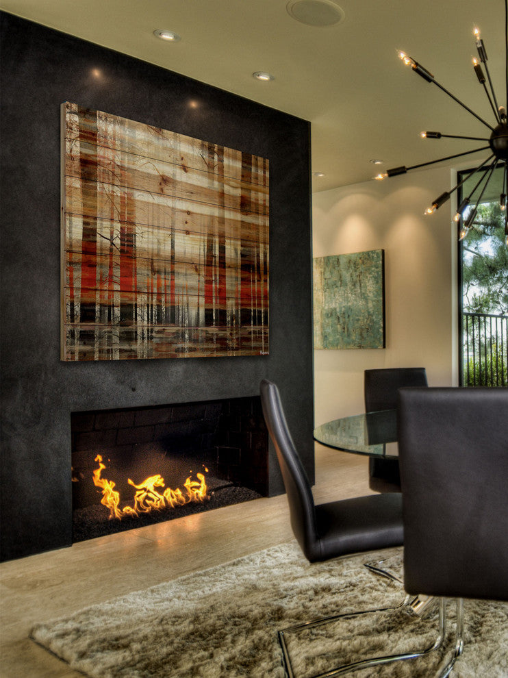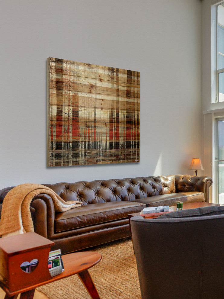 Striking and unique, the "Sunlight Through the Trunks" Print on Natural Pine Wood by Parvez Taj will bring your walls to life. Printed on natural pine wood, this 32 inch wide by 32 inch tall contemporary artwork will make a statement in any living room, dining room, or bedroom.- Fine art print on natural pine by Parvez Taj- wood pieces are hand-selected by Fine craftsmen for printing- Arrives ready to hang- Includes a certificate of authenticity- Artist signature on the front