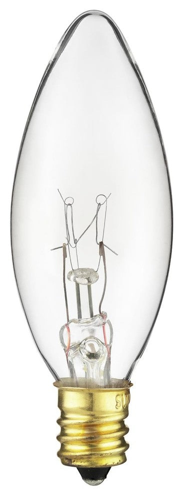 Sunlite, 15 watt incandescent candelabra based petite chandelier bulb works with most 120 volt lighting fixtures, will provide 90 lumens of light output, and will last for an average of 0.9 years. This bulb features a torpedo tip and a clear finish that provides a bright, crisp light. Incandescent lighting is commonly used for decorative, office, residential, commercial and special purpose lamps. These bulbs are also great for decorative and special purpose lighting applications.