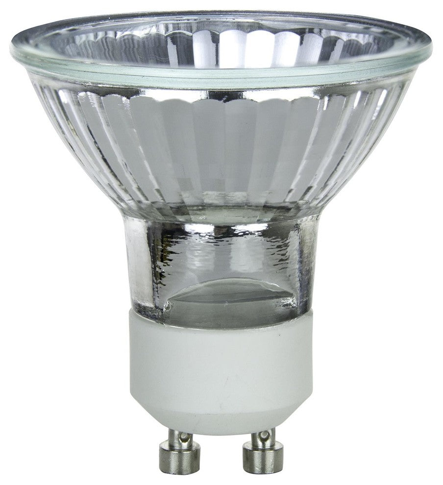 Sunlite Halogen bulbs produce more lumens per-watt (LPW) and have a longer lamp life than standard incandescent lamps. You can lower operation costs by more than 30% by using fewer halogen lamps to produce a greater amount of light. These MR16 GU10 Based Mini Reflector bulbs can last up to 1.8 years with normal household use of 3 hours a day and display a brighter, whiter light than incandescent bulbs. This Sunlite 20-watt, MR16 GU10, based Mini Reflector bulb offers a light output of 200 CBCP, has a glass lens cover and has an average rated life of 2000 hours. Great for portable lamps, ceiling fixtures, track lighting, showcase displays and most common lighting needs.