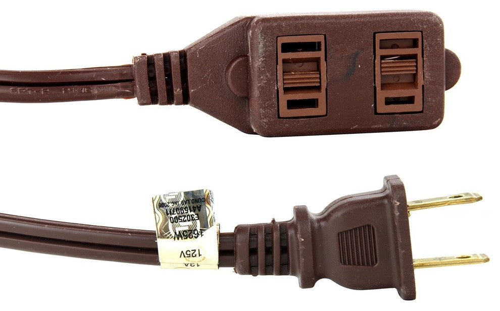 Brown 6 foot household extension cord. Features three, 2 prong outlets. Perfect for a home or office setting. UL listed.