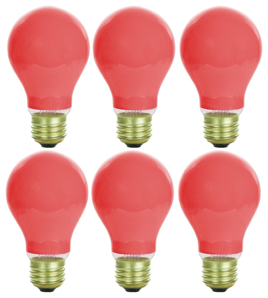 Sunlite Incandescent 25 Watt A19 Red Ceramic Light Bulb, 6 Pack