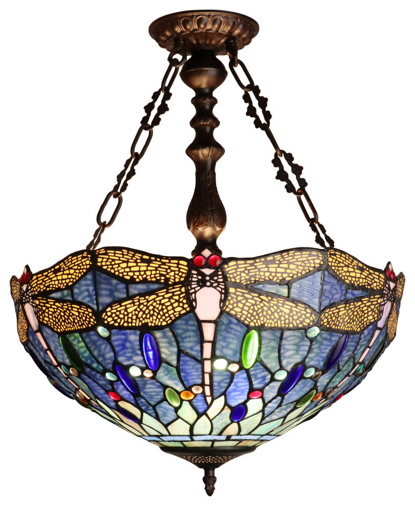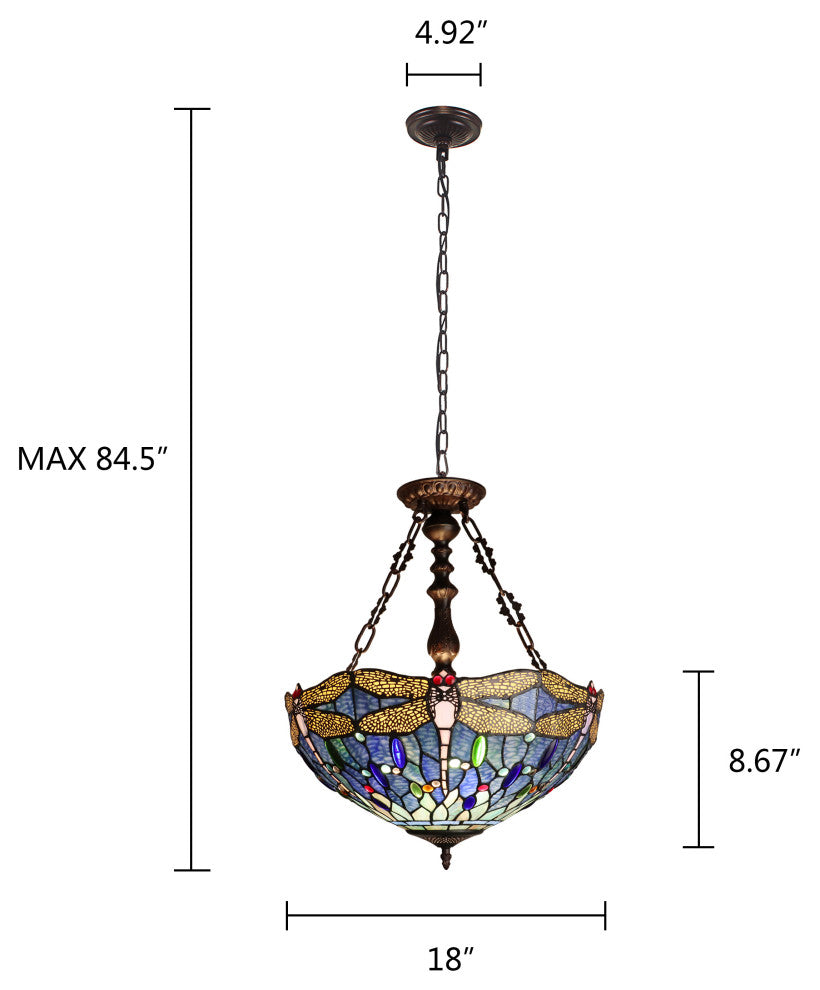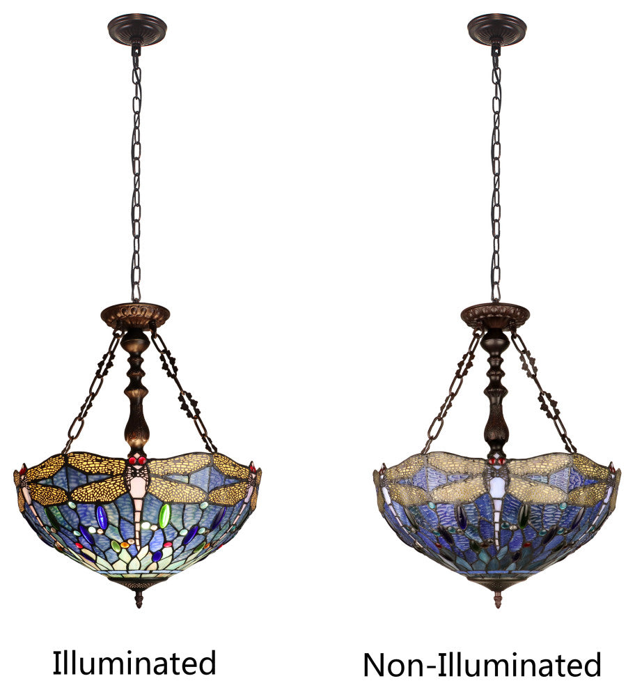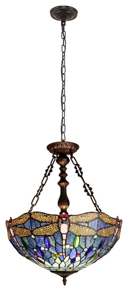 Sunniva Dragonfly Tiffany 3-Light Ceiling Pendant 18" Shade