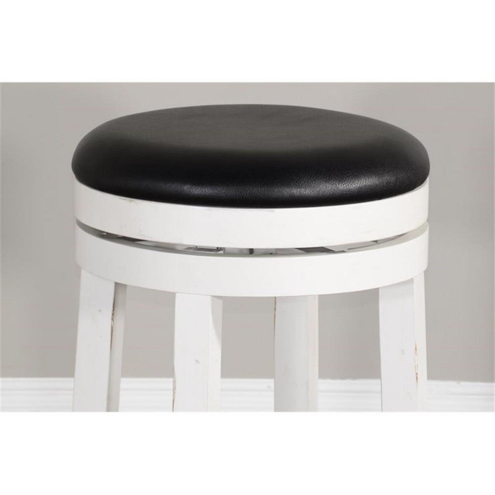 The Carriage House Swivel Stool is constructed with wood and powder coated metal to give this stool a unique industrial look.Features: • Materials: Wood • Finish: European cottage - White & dark brown • Durable vinyl seats • Powder coated metal stretchers • Set of 2Specifications: • Product Dimensions: 24"H x 19"W x 19"D • Product Weight: 17 lbs • Seat Height: 24"