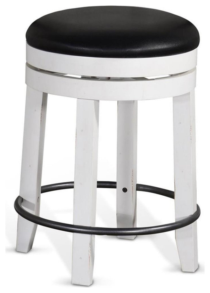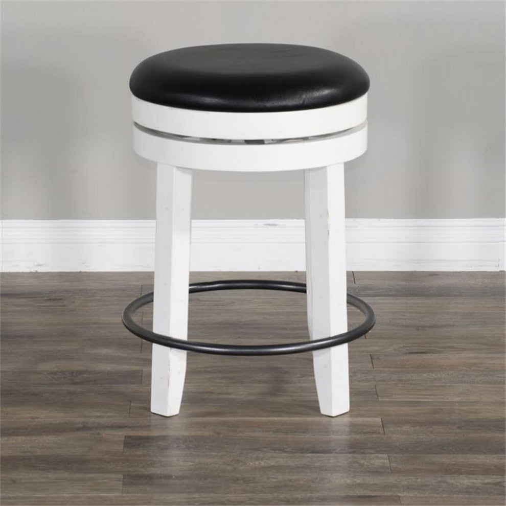 Sunny Designs 24" Carriage House Backless Swivel Stool in White/Brown (Set of 2)