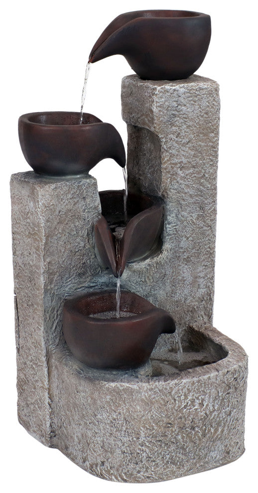 Sunnydaze Aged Tiered Vessels Solar Fountain With Battery Backup, 29"