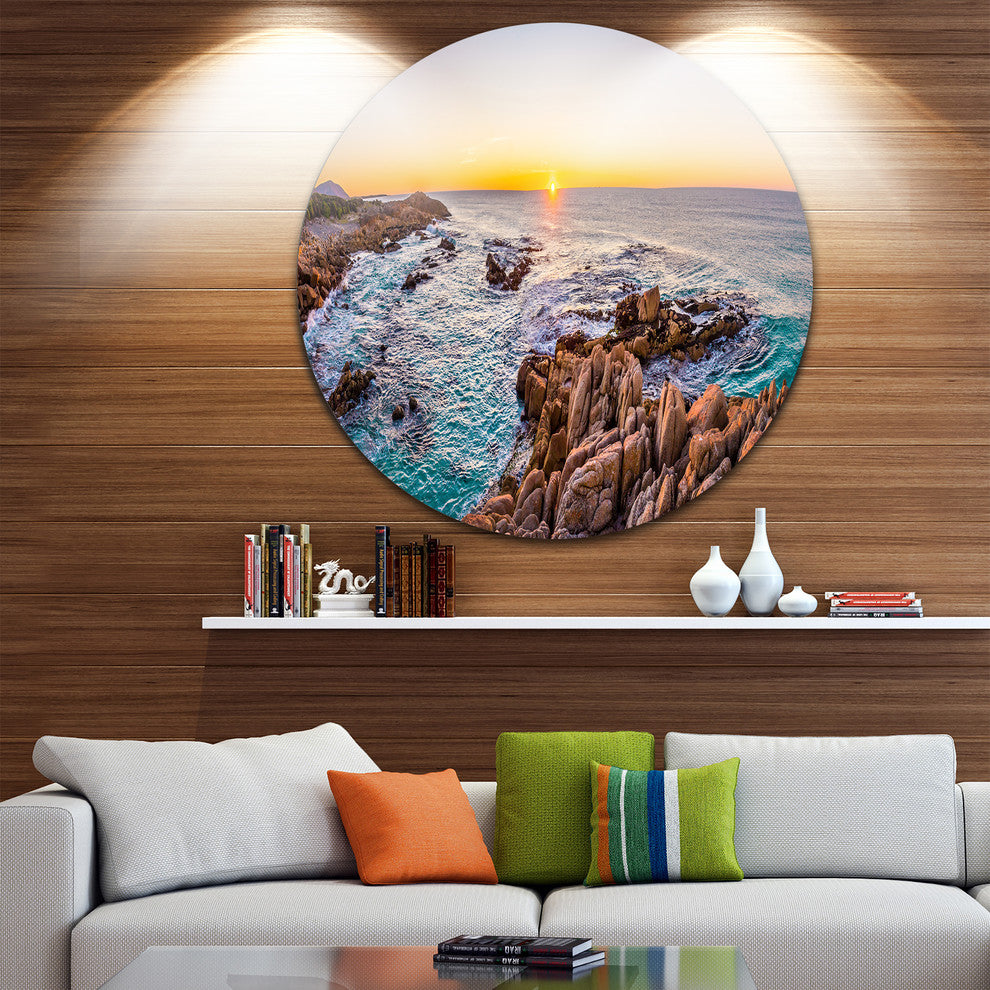 Bring Contemporary Abstraction to your home with this large Circle Metal wall art. This Sunrise at Freycinet NP Beach Metal Artwork makes it the focal point of any room or office.