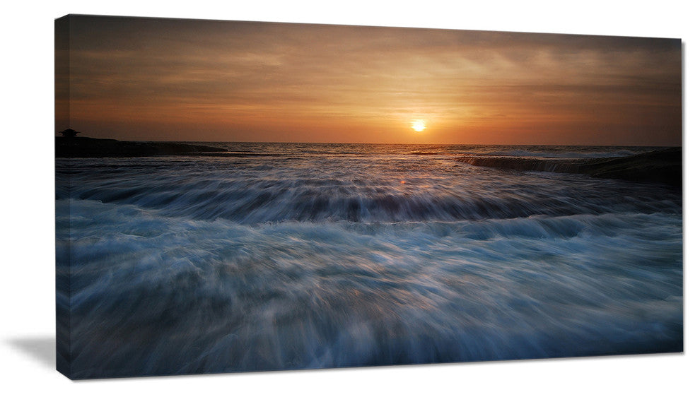The Sunrise over Rushing White Waves canvas art print is sure to make an impression on anyone who sees it. This artwork is gallery wrapped around a 1-inch solid wood frame and arrives carefully packaged and entirely ready to hang on the wall. Design Art only uses the highest resolution and pigments to ensure a crisp colorful print that is never faded or pixelated. This artwork is sure to be a conversation starter in any home or office.