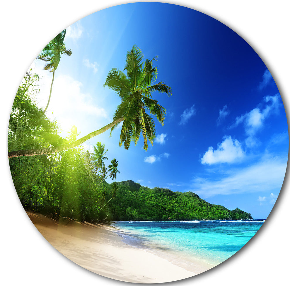 Sunset Beach With Palm, Landscape Photography Round Wall Art, 11"