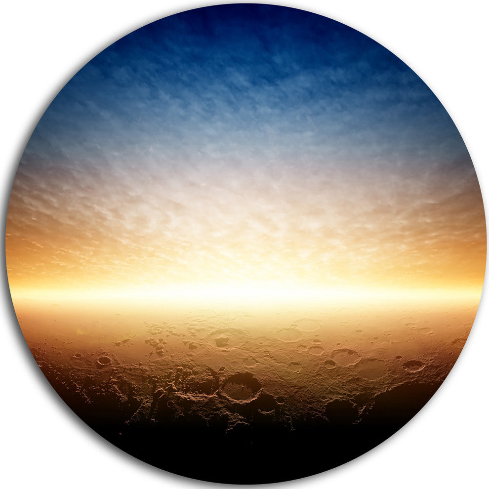 Sunset On Planet Mars, Modern Spacescape Disc Metal Wall Art, 38"
