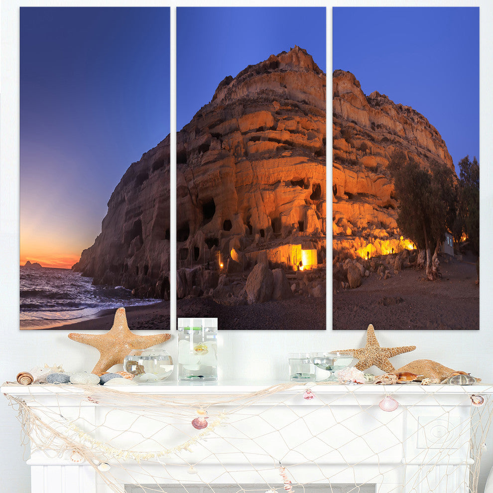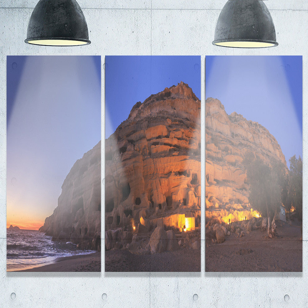 "Sunset on the Matala Beach Greece" Metal Wall Art, 3 Panels, 36"x28"
