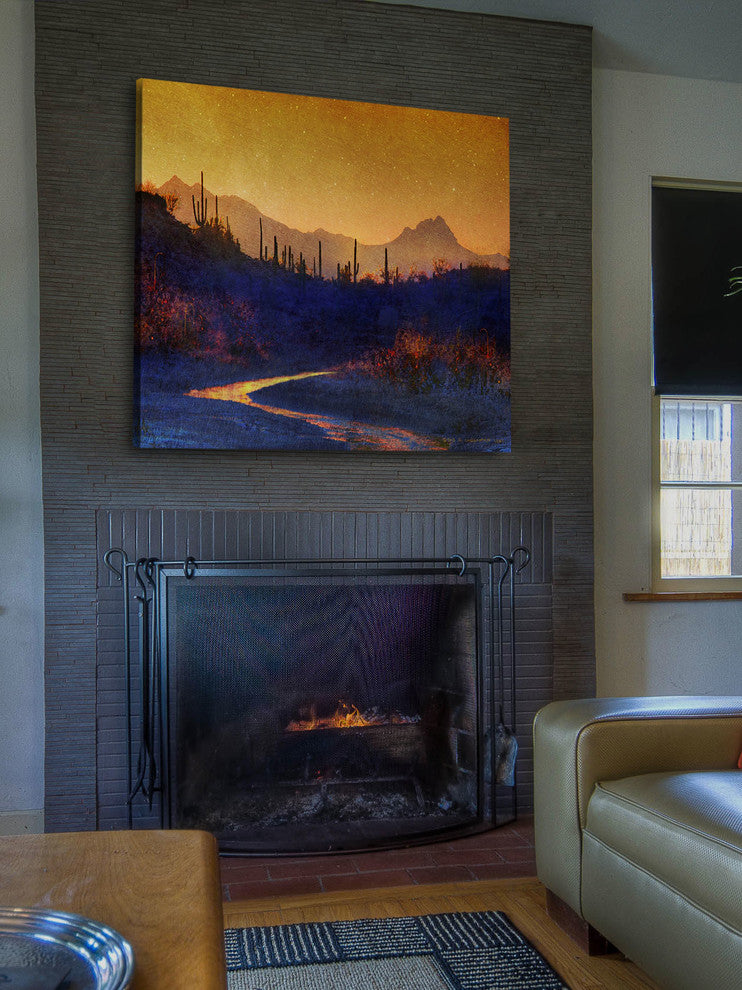 "Sunset Saguaros Stream" Painting Print on Canvas by Chris Vest