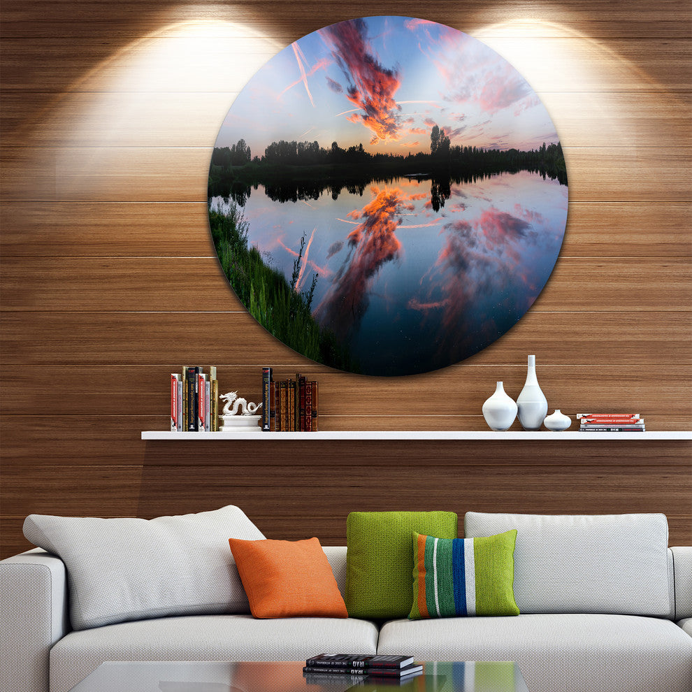 Sunset Sky Mirrored In Lake Water, Landscape Disc Metal Wall Art, 36"