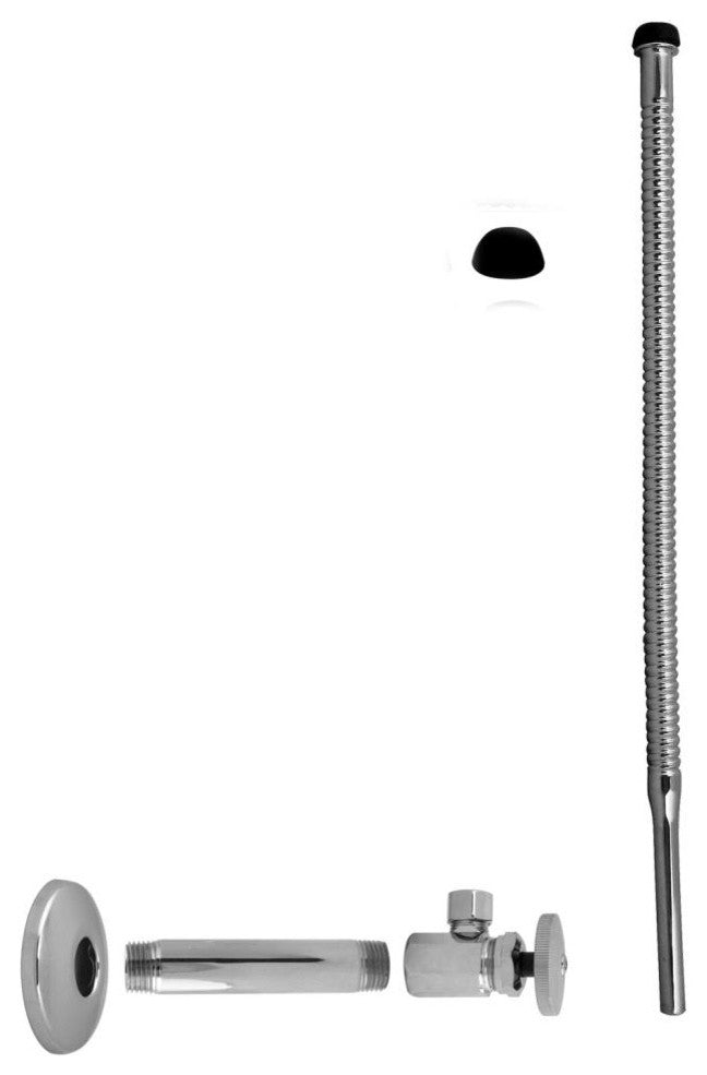 This Angle Stop Kit with Round Handle is the perfect compliment for sinks and toilets. It uses a 1/2 in. IPS threaded Inlet with a 3/8 in. OD Compression outlet with nut and ferrule. The kit features a 15 in. corrugated riser with seals for sink or water closet. The valve uses traditional compression closure for positive seal. It is available in a variety of finishes.