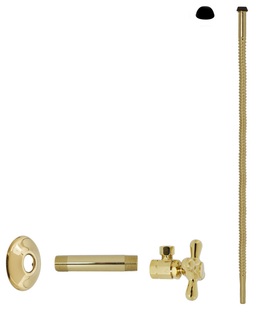 This Angle Stop Kit with Cross Handle is the perfect compliment for sinks and toilets. It uses a 1/2 in. IPS threaded Inlet with a 3/8 in. OD Compression outlet with nut and ferrule. The kit features a 20 in. corrugated riser with seals for sink or water closet. The valve uses traditional compression closure for positive seal. It is available in a variety of finishes.