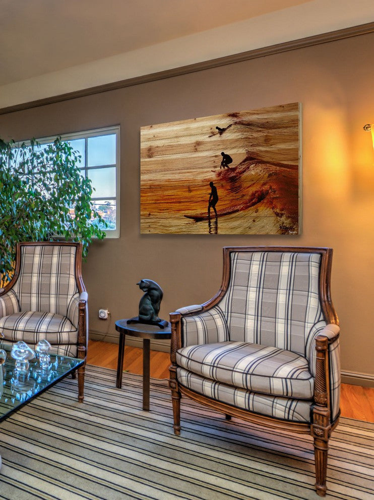"Surfing the Wave" Print on Natural Pine Wood, 45"x30"