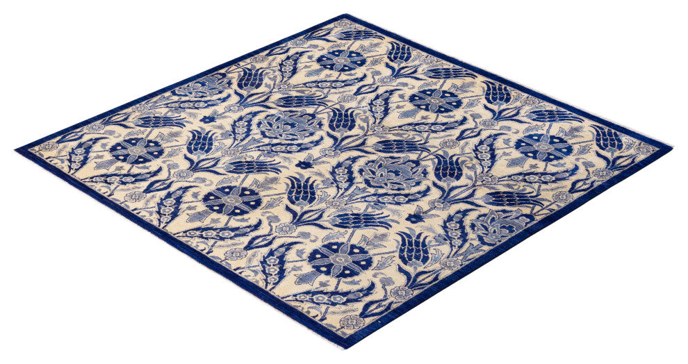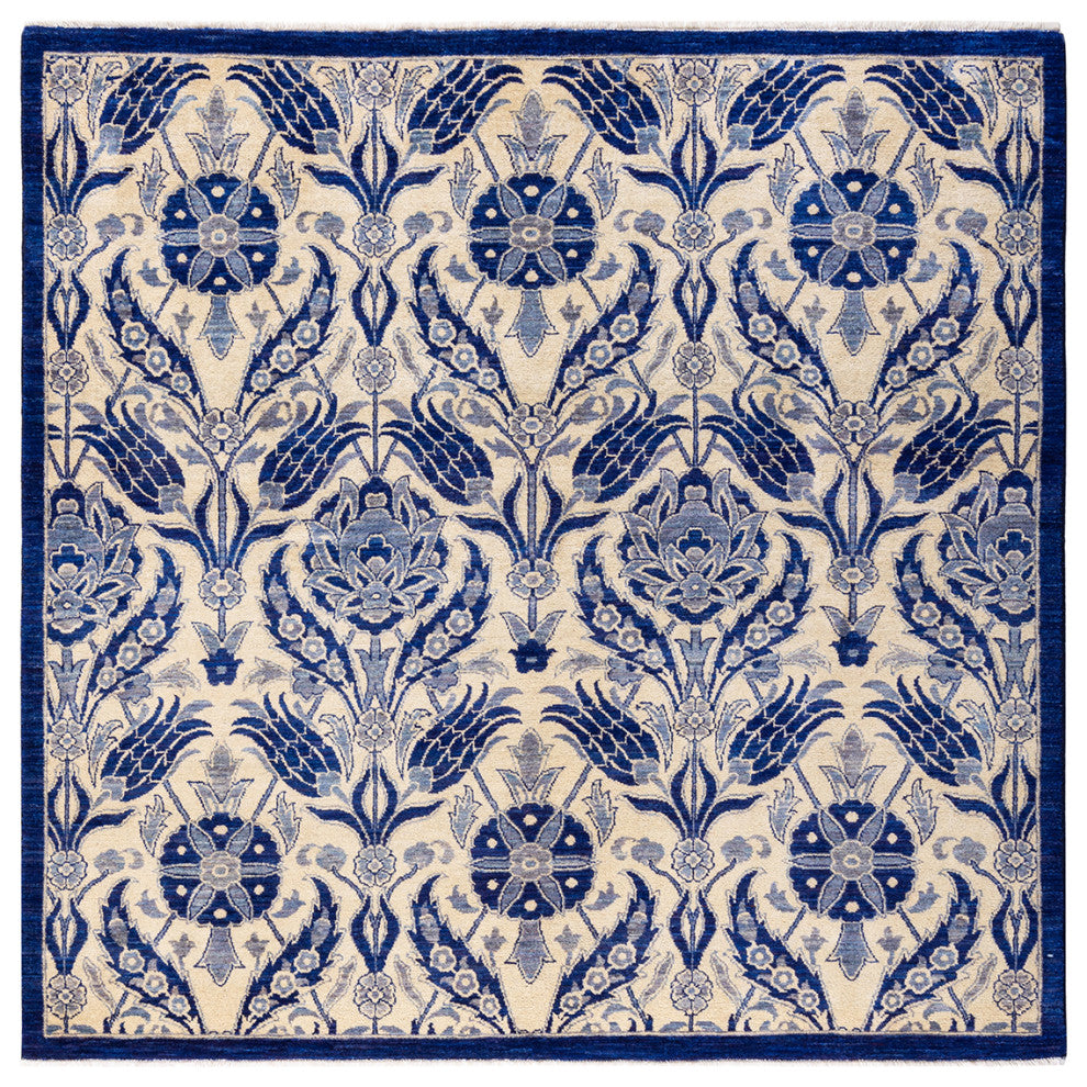 Suzani, One-of-a-Kind Hand-Knotted Area Rug Blue, 6' 3" x 6' 6"