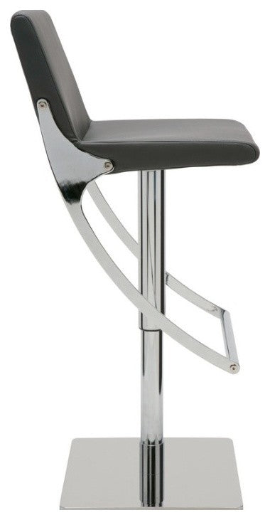 The Swing Adjustable Bar Stool features full 360 degree swivel for optimum flexibility in use and a gas lift mechanism so you can adjust your designed height from 20.5" to 30.5". The seat is made of naugahyde leather upholstery and CFS foam, which is both comfortable and luxurious. The polished stainless steel base of Swing barstool by Nuevo Living is built for years of dependable use. Available Colors: Black, White, Brown and Grey Stainless steel frame and footrest Naugahyde leather upholstery Hardwood seat frame with CFS foam Height-adjustable and swiveling seat, enhancing its functionality Hydraulic frame lever for height adjustment Many hours of comfort and enjoyment Very heavy and sturdy Overall: 16.25"W x 19"D x 30.5 - 40.5"H Seat height: 20.5 - 30.5
