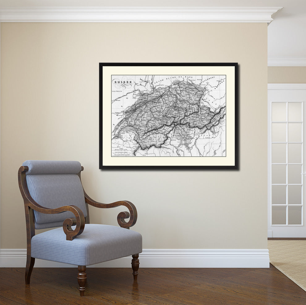 Switzerland Vintage B&W Map Canvas Print, 16"x21"
