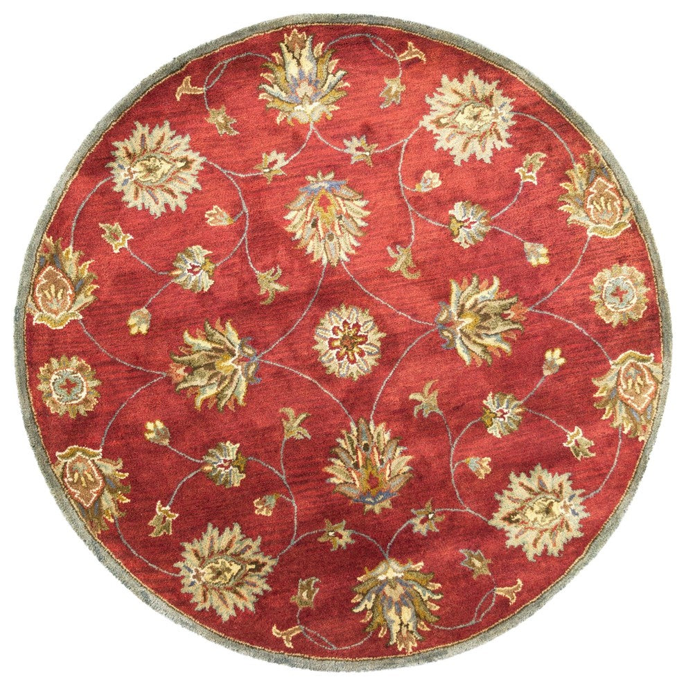 Syriana 6003 Red Allover Kashan 5''6" Round. Hand-Tufted of 100% New Zealand Wool with Cotton Backing. Made in India. Vacuum regularly & spot clean stains. Professional cleaning recommended periodically.