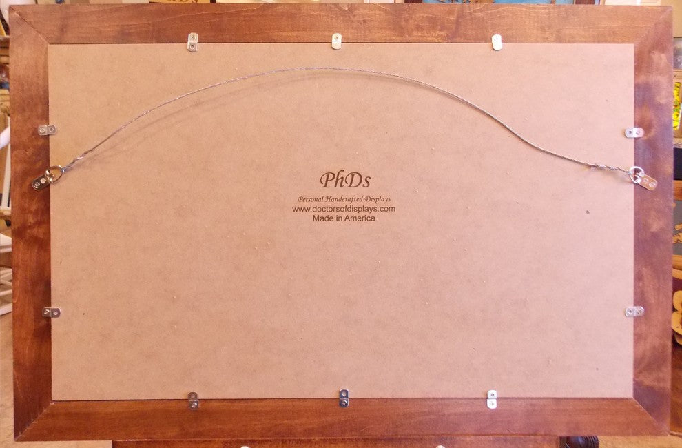 Our handmade, solid wood, English chestnut stained frame gives it the classic look and is available in three sizes. All maps include special points of interest laser engraved into the map face and come with a beautiful blue self-adhesive Swarovski Crystal to mark your preferred location on the map. Each map is a beautiful artistic handcrafted work of art using the finest woods with special attention to every detail. Due to the natural variation in wood grain, each map will vary slightly in finish and color. Birch is our wood of preference. Once the map is cut and engraved we hand sand multiple times, assemble and clear coat them for a lustrous wood shine. We believe that this personal attention each and every item receives makes each wooden item a unique work of art. Made in the USA by American workers in an American owned business.