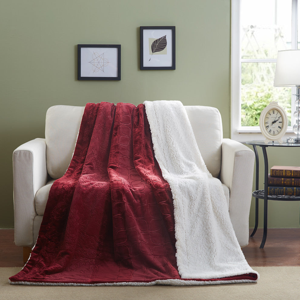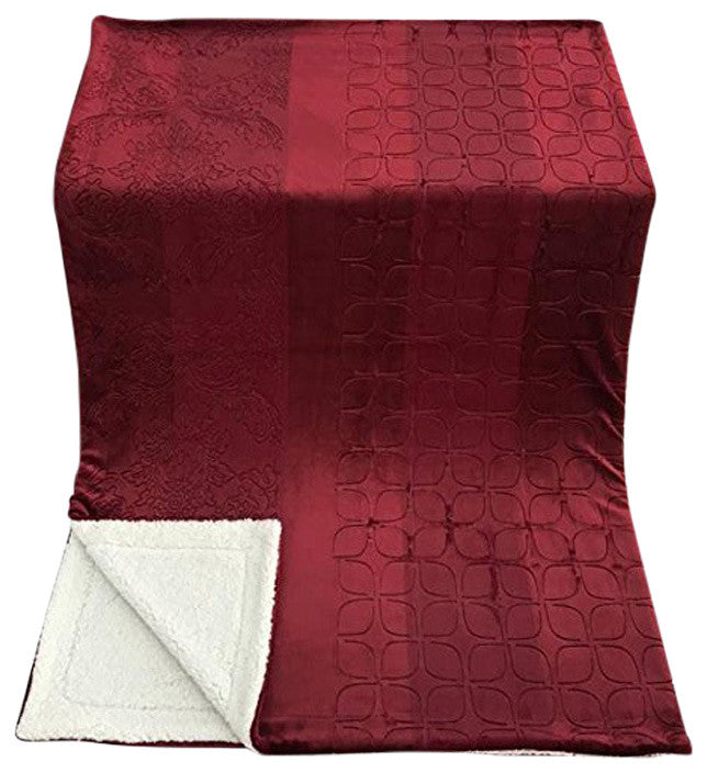 Tache Embossed Super Soft Warm Solid Merlot Red Sherpa Throw Bed Blanket, 63x87