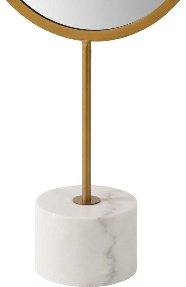 A marriage of luxury and minimalist design, this floor length mirror is inherently radiant. Set in the contemporary bedroom, this piece brings an upscale quality to the space. Featuring a marble base and an antique brass finished frame, it holds an ideal mix of old and new inspirations.