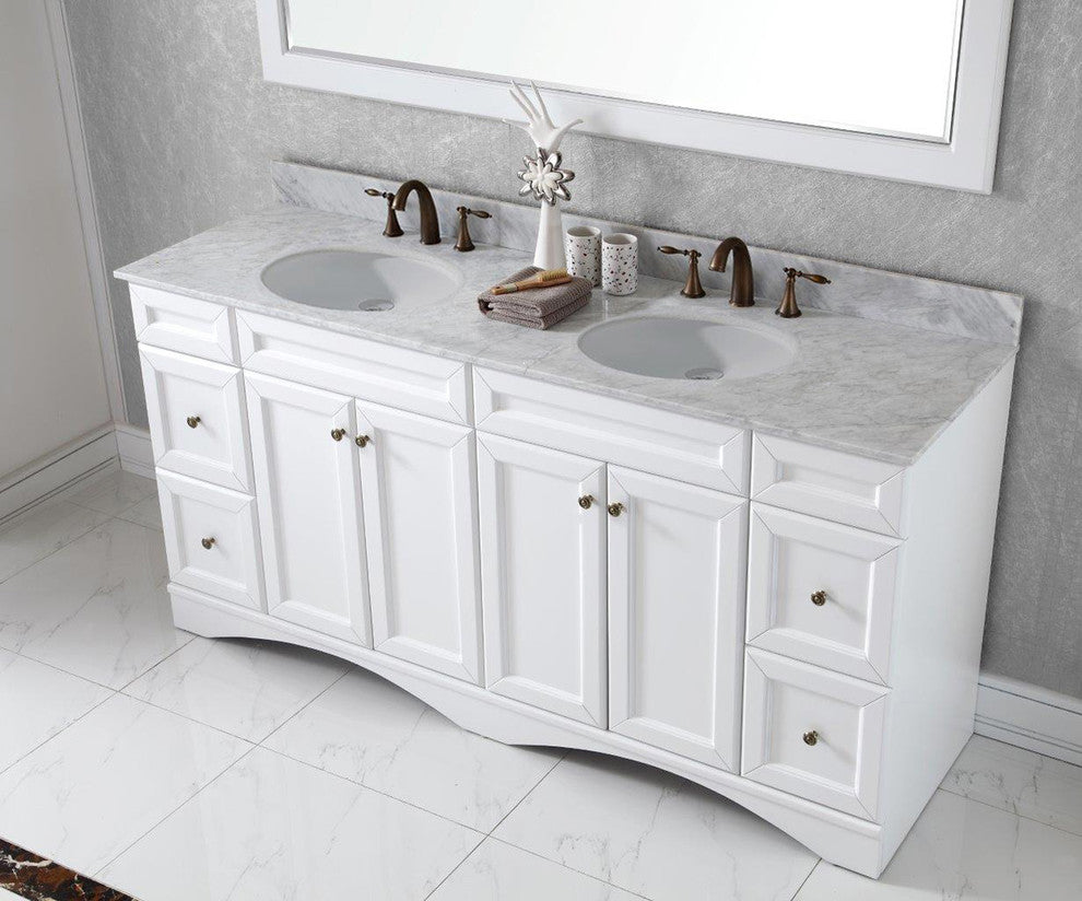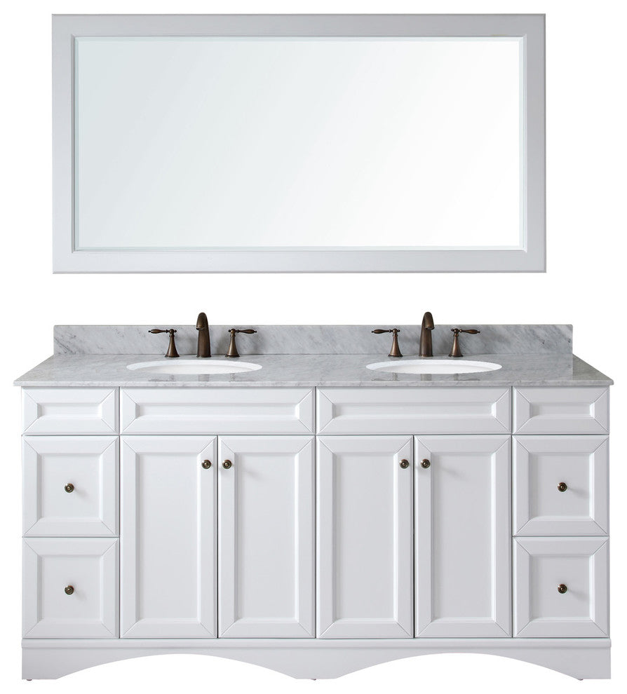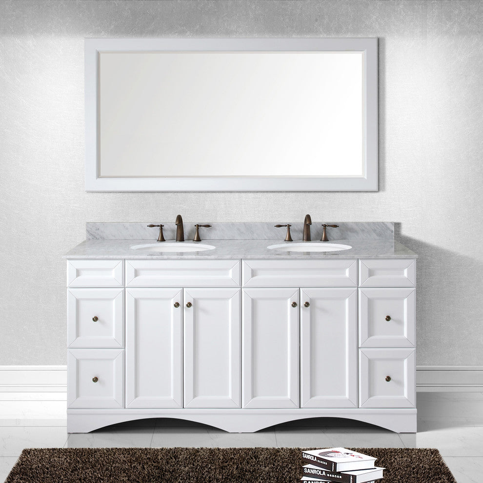 Talisa 72" Double Bathroom Vanity Set, White With Mirror, Round Basin