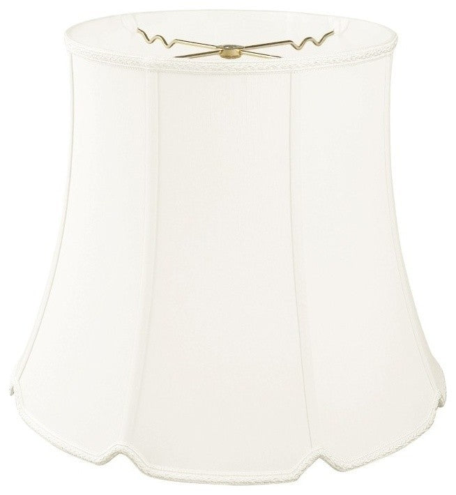 This Tall Drum Bottom V-Notch Designer Lampshade is a part of Royal Designs, Inc. Timeless Designer Shade Collection and is perfect for anyone who is looking for an elegant yet detailed lampshade. Royal Designs has been in the lampshade business since 1993 with their multiple shade lines that exemplify handcrafted quality and value.Please note that there will be an over-sized shipping surcharge for this lamp shade. All other shipping promotions will still be accepted, unless otherwise noted. Exterior Fabric: Hand Tailored Silk-Type Shantung (except Linen fabrics)Interior Fabric: Off-White softback lining (Black and other colored fabrics have gold lining)Washer: Standard brass-finish spider fitter, use a finial to fasten shade. (All shades with 9"+ top diameter have a V-Notch fitter for use on a 6 or 8 reflector bowl)Trim: Top and bottom designer trim (single, double or braided) with vertical pipingFrame: Heavy grade rust resistant metal frameBulb: Suggested maximum wattage is 150-watt for most sizes (clip on shade max 60W)Height is measured by slant height from top to bottom of the lampshades front facePlease measure your existing shade--a replacement harp may be needed for a proper fit or additional adjustment if changing height of shade