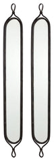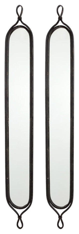 Decorate a bare wall with this set of Tall Narrow Mirrors. Featuring metal frames with small loop accents, these two narrow mirrors are understated and sophisticated. Hang them side-by-side on a bedroom or hallway wall.