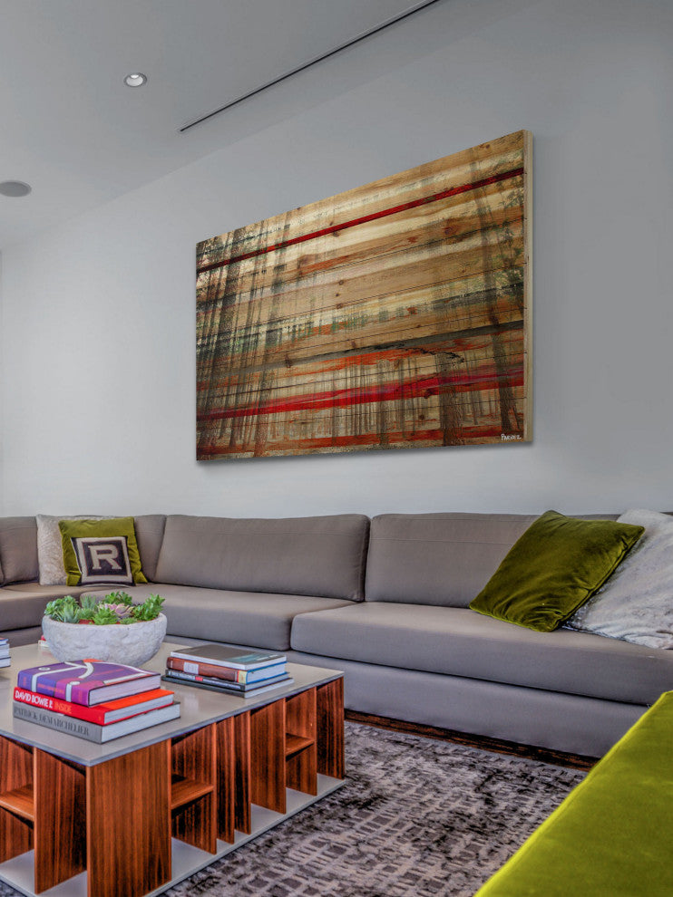 "Tall Tree Forest" Print on Natural Pine Wood, 36"x24"