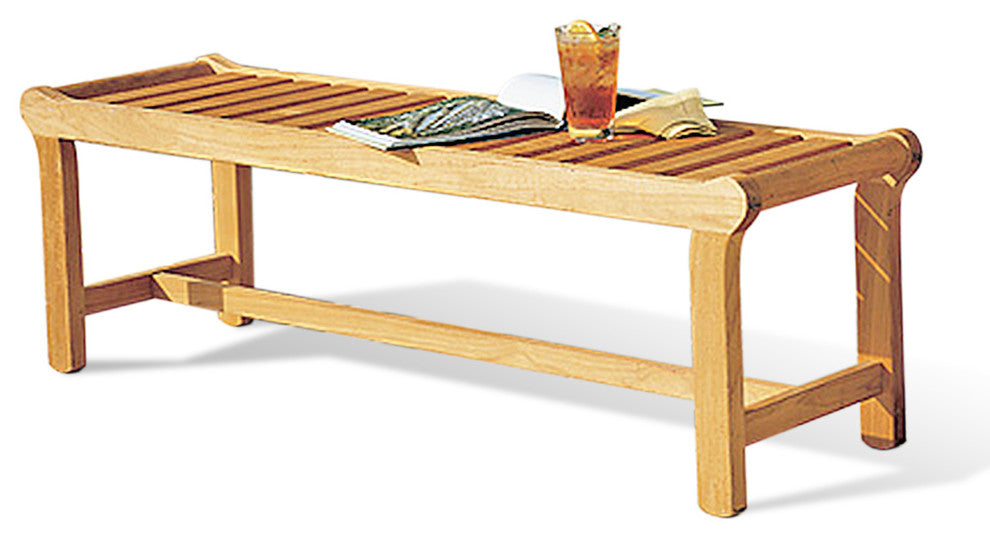 This backless bench outdoor teak maybe the most versatile bench we offer since it is can be used at a table for extra seating, set in your entry way for changing shoes or great as a seat in the shower, only your imagination can limit its use.