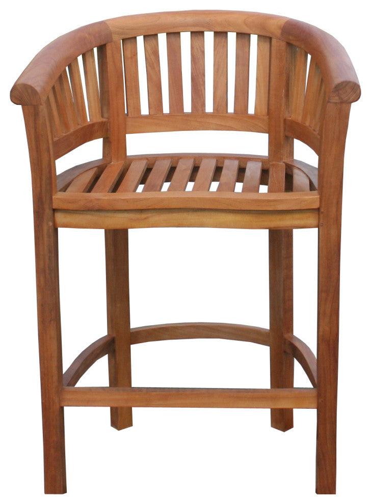 This teak peanut bar stool fashioned from 100% grade A teak wood is stunning! The unusual shapes of the pieces in this collection are sure to spark debate among your guests. Some people say they look like a peanut, others say a banana, but we say it''s simply one of the most elegant designs that we have, showcasing the exotic beauty that teak wood brings to any decor. The unusual shape makes this bar stool both distinctive and inviting, and its sturdiness makes it ideally suited for commercial use.