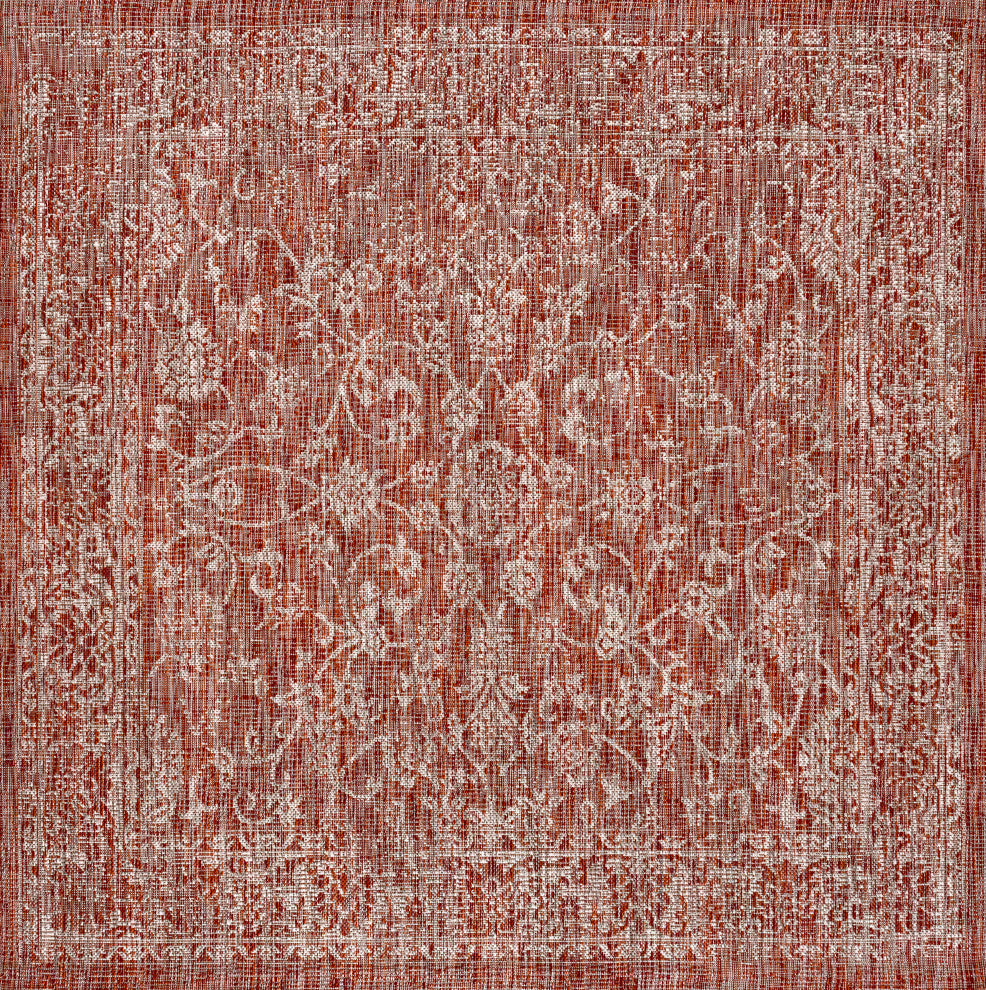 With a vine-and-border design inspired by Persian rugs, our Boho-chic rug adds eclectic style to an outdoor porch or patio. Varied tones of red and rust mingled with a taupe pattern give this rug a hand-woven, vintage vibe. The flatweave design is great for high-traffic spaces indoors too.Features:• Flat-weave construction of 100% polypropylene• Red and taupe with a handwoven mingled texture• Water resistance with 0.19" pile• 100% Polypropylene• No backing, use of rug pad is recommended (sold separately)• Power Loomed in Turkiye• Actual Dimension: 6 ft 7 in. x 6 ft 7 in. Square• Color: Red/Taupe• Thickness measures: 0.19 in.• Available in multiple sizes and/or colorsRug Care:• Vacuum regularly and spot clean as needed; avoid direct and continuous exposure to sunlight; use brushless vacuum; remove spills immediately; if liquid, blot with clean, undyed cloth by pressing firmly around the spill to absorb as much as possible; for hard to remove stains, professional rug cleaning is recommended; store in a dry, well ventilated area and rotate for consistent wear• Packing and shipping may cause temporary creases in rugs, which will flatten out after a week on the floor; to expedite the process, try back-rolling your rug before laying it down, and then allow ample time for the remaining creases to relax• Please Note: Due to differences in monitors, some rug colors may vary slightly. Lengths and widths may vary from the published dimensions. Patterns may vary slightly according to shape and size selected.About us:Style your floors with JONATHAN Y. By combining fine craftsmanship and design, this New York creative studio is bringing fashion to your floors. The collection mixes sustainable organic materials, vibrant colors and trend worthy styles to create JONATHAN Y''s distinctive catalog of rugs.
